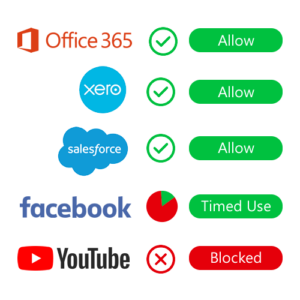 Social media and other websites can be a great source of information, but they can also be a distraction for some people. We provide you with the ability to control what occurs on your business network. Do you want to block Facebook, YouTube and Instagram? This is easily done on our Core plan.